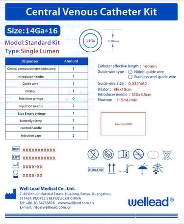 Central Venous Catheter (CVC) Kit adalah set alat steril sekali pakai untuk pemasangan kateter vena sentral sebagai akses vaskular pada prosedur medis, diproduksi oleh Wellead.